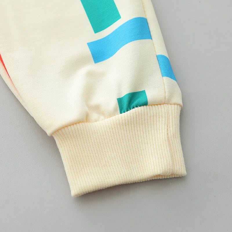 Ett modernt och bekvämt tvådelat set för små barn, perfekt för höstens svalare dagar. Setet är tillverkat i mjukt stickat twill-tyg med lätt stretch, vilket ger bra rörelsefrihet och skön komfort hela dagen. Det geometriska mönstret ger en stilren och trendig look. Passar både flickor och pojkar.